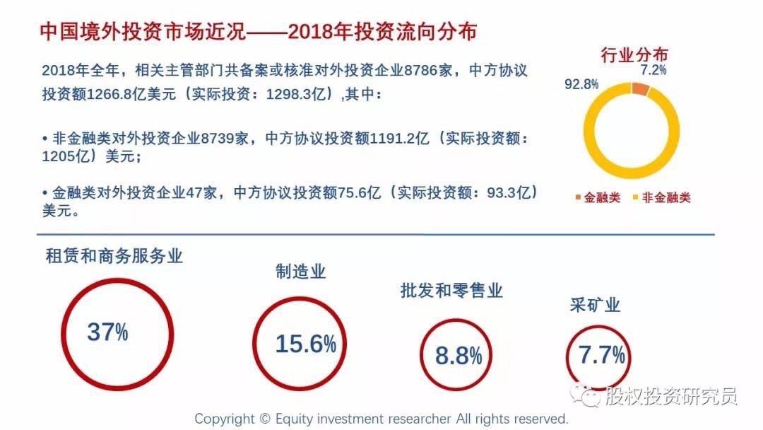 1. 2018年全行業(yè)同比2017年增長4.2%;金融行業(yè)投資較去年同比增長105.1%;非金融類較去年同比增長0.3%。從數(shù)據(jù)來看,在2018年,盡管資金出境難度進(jìn)一步加大,但整體境外投資仍在增加,尤其是金融行業(yè)的投資增幅較大,可以看出,近年來境外投資的需求旺盛。